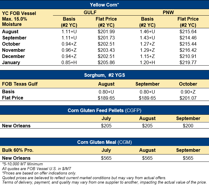 Home | MARKETS, TOOLS & DATA / REPORTS | Market Perspectives Market Perspectives – July 24, 2025 Contents CBOT Corn Futures Prices FOB Prices Distiller’s Dried Grains with Solubles (DDGS) Pricing Ocean Freight Markets and Spreads Download report FOB Prices