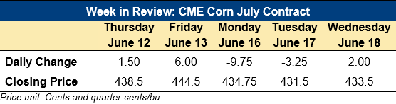 Home | MARKETS, TOOLS & DATA / REPORTS | Market Perspectives Market Perspectives – June 18, 2025 Contents CBOT Corn Futures Prices FOB Prices Distiller’s Dried Grains with Solubles (DDGS) Pricing Ocean Freight Markets and Spreads Download report CBOT Corn Futures Prices Daily Price Evolution: Weekly Price Performance: