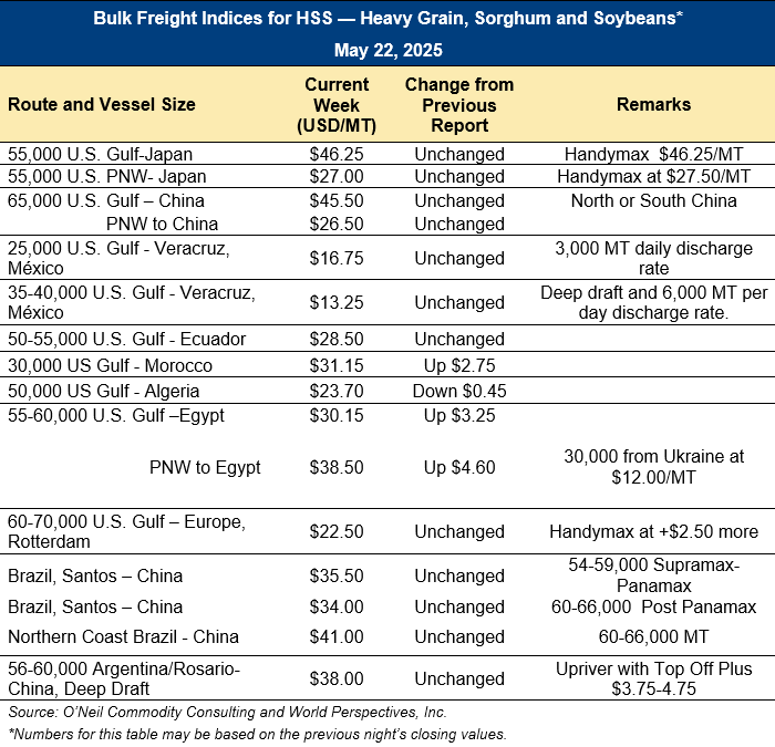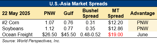 Home | MARKETS, TOOLS & DATA / REPORTS | Market Perspectives Market Perspectives – May 22, 2025 Contents CBOT Corn Futures Prices FOB Prices Distiller’s Dried Grains with Solubles (DDGS) Pricing Ocean Freight Markets and Spreads Download report Ocean Freight Markets and Spreads