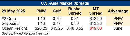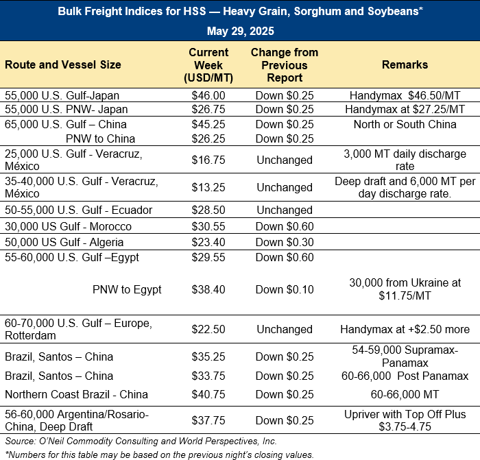 Home | MARKETS, TOOLS & DATA / REPORTS | Market Perspectives Market Perspectives – May 29, 2025 Contents CBOT Corn Futures Prices FOB Prices Distiller’s Dried Grains with Solubles (DDGS) Pricing Ocean Freight Markets and Spreads Download report Ocean Freight Markets and Spreads