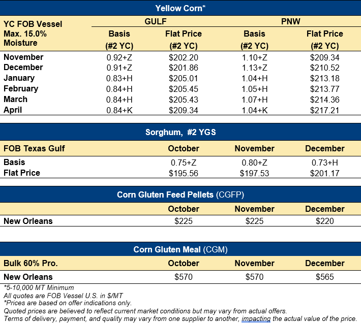 • Corn Harvest Quality & Export Cargo Reports
