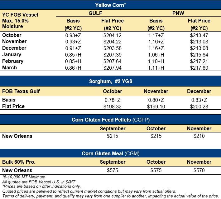 • Corn Harvest Quality & Export Cargo Reports