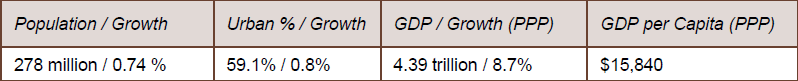 -Largest gross domestic product in SoutheastAsia; 4th largest population in the world