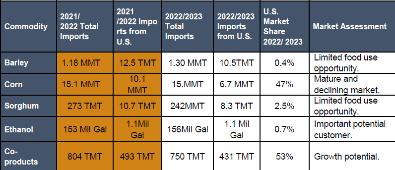 -#3 import market for U.S. corn and U.S. barley in MY 2022/2023.
