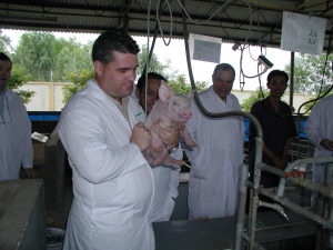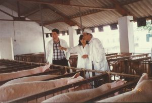 Sifferath touring a swine farm in Vietnam with officials from the country’s Ministry of Agriculture and Rural Development in 1996.