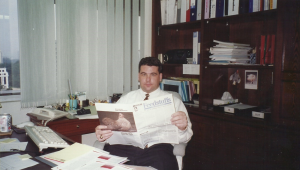 Sifferath at his desk in Kuala Lumpur, Malaysia, in 1998. His first mobile phone sits on the table to his right.