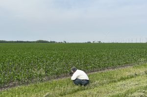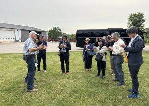 Participants interviewed stakeholders along the value chain for their perspective on the importance of biofuels in the global energy economy. Pictured, the delegation speaks to Paul Jeschke on his farm in Mazon, IL.
