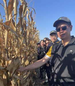 After lunch, attendees visited USGC At-Large Director Jim Reed’s farm in De Land, Illinois, to watch soybean harvest and learn more about his family farm operation. Reed shared that this year’s corn crop is exceptionally good, rearing about 250 to 280 bushels per acre. Attendees examined the corn and soybean crops while watching the harvesting process in action.