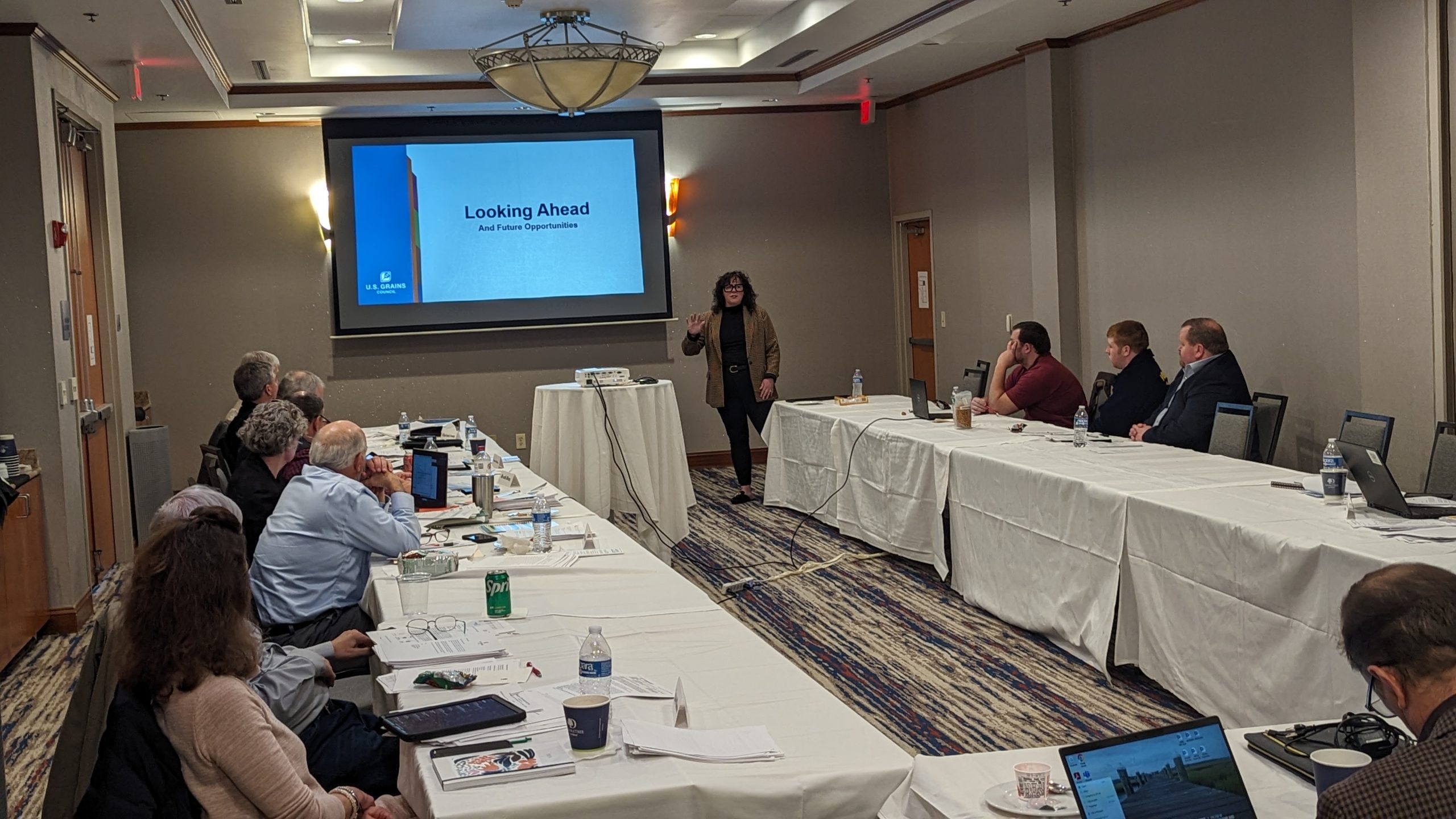 This week, U.S. Grains Council (USGC) industry relations staff members are in Virginia for a funding presentation. Working together with state partners is a pivotal piece of the Council’s work, and the organization is grateful for its partners near and far. Pictured, USGC Director of Industry Relations Ellen Zimmerman offers a presentation about the work the Council does around the world on behalf of its members.