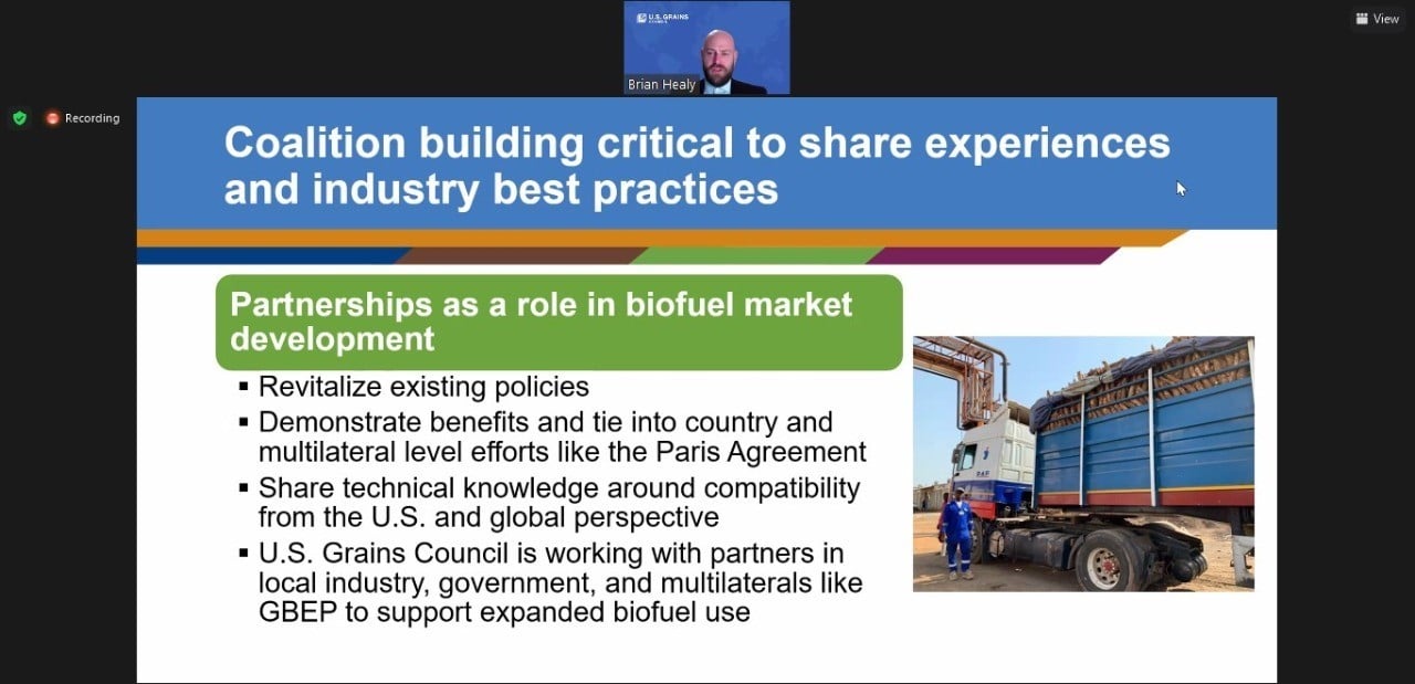 USGC Director of Global Ethanol Market Development Brian Healy recently spoke at the 8th Bioenergy Week organized by the Global Bioenergy Partnership (GBEP), an organization that brings together public, private and civil society stakeholders in a joint commitment to promote bioenergy for sustainable development. The regionally-focused conference provided a platform to support the design and implementation of bioenergy policies in African countries. In his presentation, Healy stressed the need for building coalition and cooperation within the renewable energy sector.