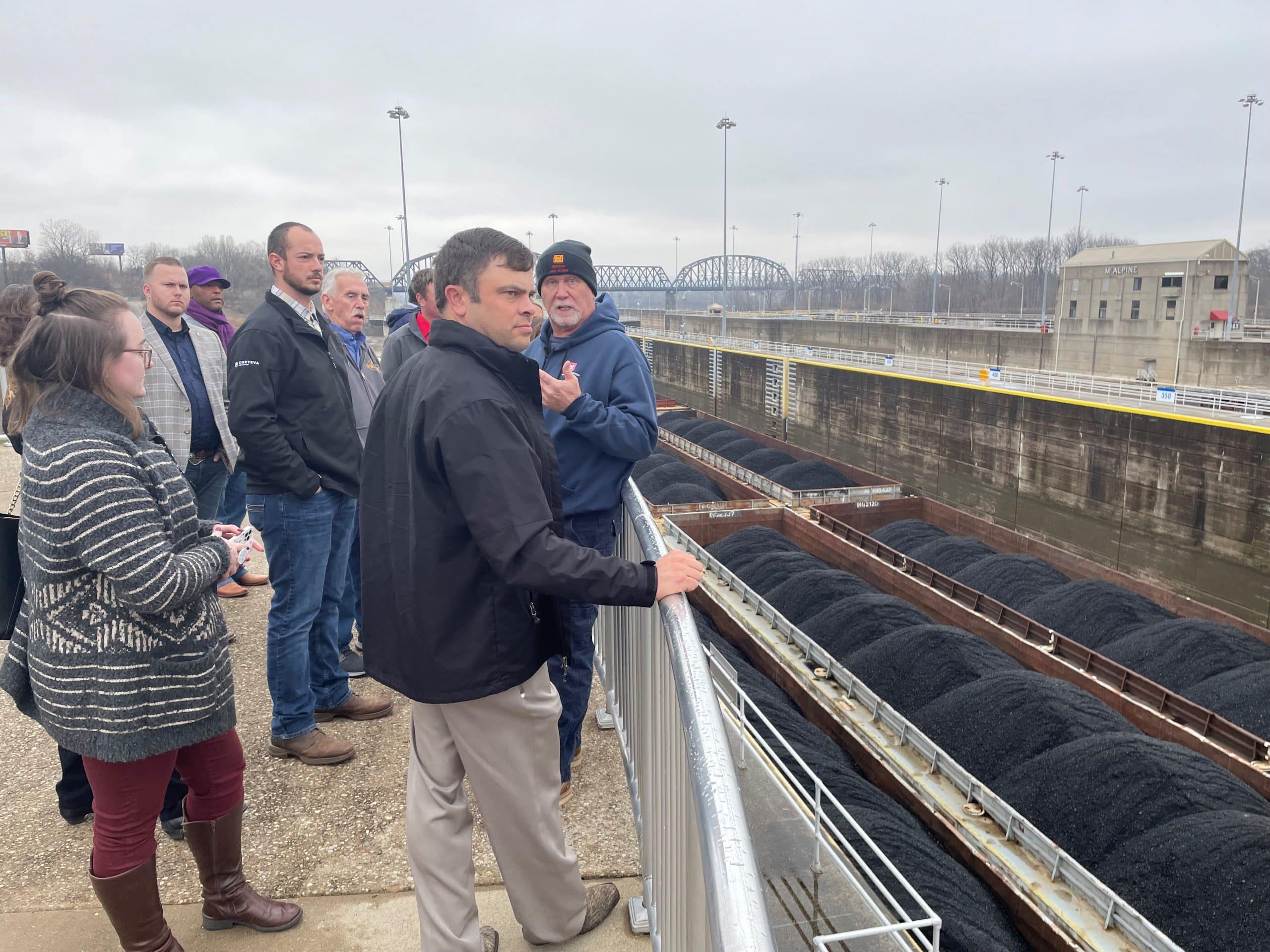 In the latest edition of Trade School, sponsored by the U.S. Grains Council (USGC), National Corn Growers Association (NCGA), Indiana Corn Marketing Council, Kentucky Corn Growers Association and Ohio Corn and Wheat, participants traveled to Louisville where they hit the books on all things trade. In addition to in-the-classroom activities, attendees had the opportunity to visit a nearby lock, which raises and lowers boats and ships between stretches of water where water levels may differ. While the group saw coal, they were more interested in how the lock operates when U.S. grains are involved. The process looks the same regardless of what may be going through the lock.