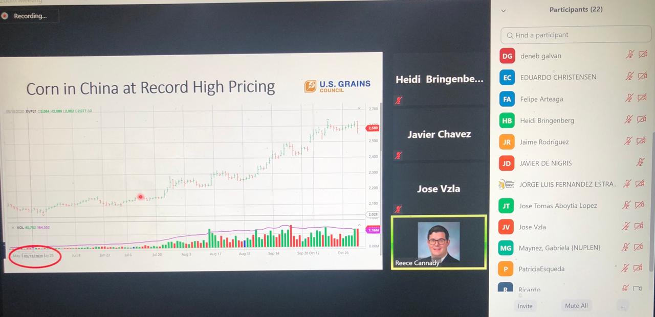 Mexico. Webinar discussions with GRUMA, the largest white corn buyer in Mexico, provided the latest information on U.S. white corn production and supply. GRUMA also participated in a virtual trade team to Illinois, Nebraska, Missouri and Kentucky last month following the Virtual Grain Exchange – all part of the effort to connect corn suppliers with this big buyer.