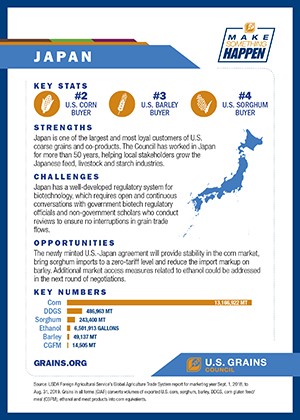 The U.S. Grains Council (USGC) is sharing these fun trade facts and many more on its social media channels in May as part of World Trade Month. Follow along as the Council highlights the strengths, opportunities and challenges of the top markets for U.S. corn, sorghum, barley, ethanol and dried distiller’s grains with solubles (DDGS).