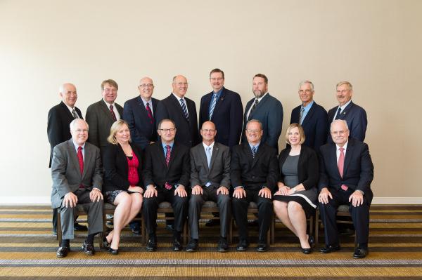 2015/2016 Board of Directors Front row, from left: At-Large Director, Jim Tobin, Monsanto Company; Executive Assistant, Wendie Cable, U.S. Grains & BioProducts Council; Past Chairman, Ron Gray, Illinois Corn Marketing Board; Chairman, Alan Tiemann, Nebraska Corn Board; Vice Chairman, Chip Councell, Maryland Grain Producers Utilization Board; Secretary/Treasurer, Debra Keller, Iowa Corn Promotion Board; President and CEO, Tom Sleight, U.S. Grains & BioProducts Council. Back row, from left: Corn Sector Director, Dick Gallagher, Iowa Corn Promotion Board; At-Large Director, Charles Ring, Texas Corn Producers Board; Former Agribusiness Sector Director, Steve Brody, DuPont Pioneer; At-Large Director, Jim Stuever, Missouri Corn Merchandising Council; Checkoff Sector Director, Craig Floss, Iowa Corn Promotion Board; Barley Sector Director, Mark Seastrand, North Dakota Barley Council; Sorghum Sector Director, Bill Kubecka, United Sorghum Checkoff Program; At-Large Director, Jim Raben, Illinois Corn Marketing Board. Not pictured: Agribusiness Sector Director, Greg Hibner, J.D. Heiskell & Company.